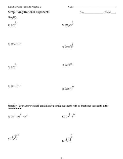 The worksheet covers a variety of topics related to exponents, such as the product rule, the power rule, and the quotient rule. Each rule is explained in detail, with examples given to help students understand each concept. The worksheet also includes practice problems to help students apply the concepts to real-world problems.