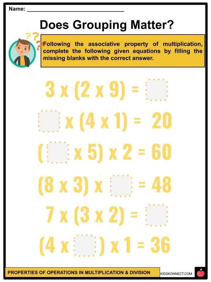 Properties Of Operations In Multiplication And Division Facts & Worksheets In Properties Of Operations Worksheet