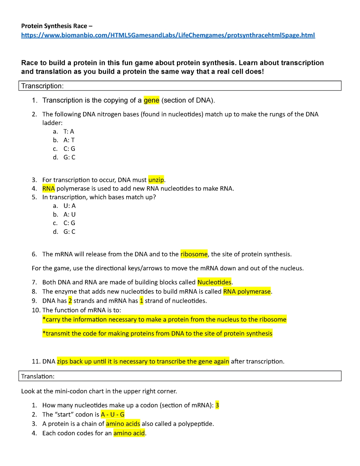 In addition, these worksheets can provide an opportunity for students to work together in small groups. By working together, students are able to better understand and apply the concepts of protein synthesis in a collaborative way. This team-based approach also allows for students to receive feedback from their peers, which can further enhance their understanding of the material.