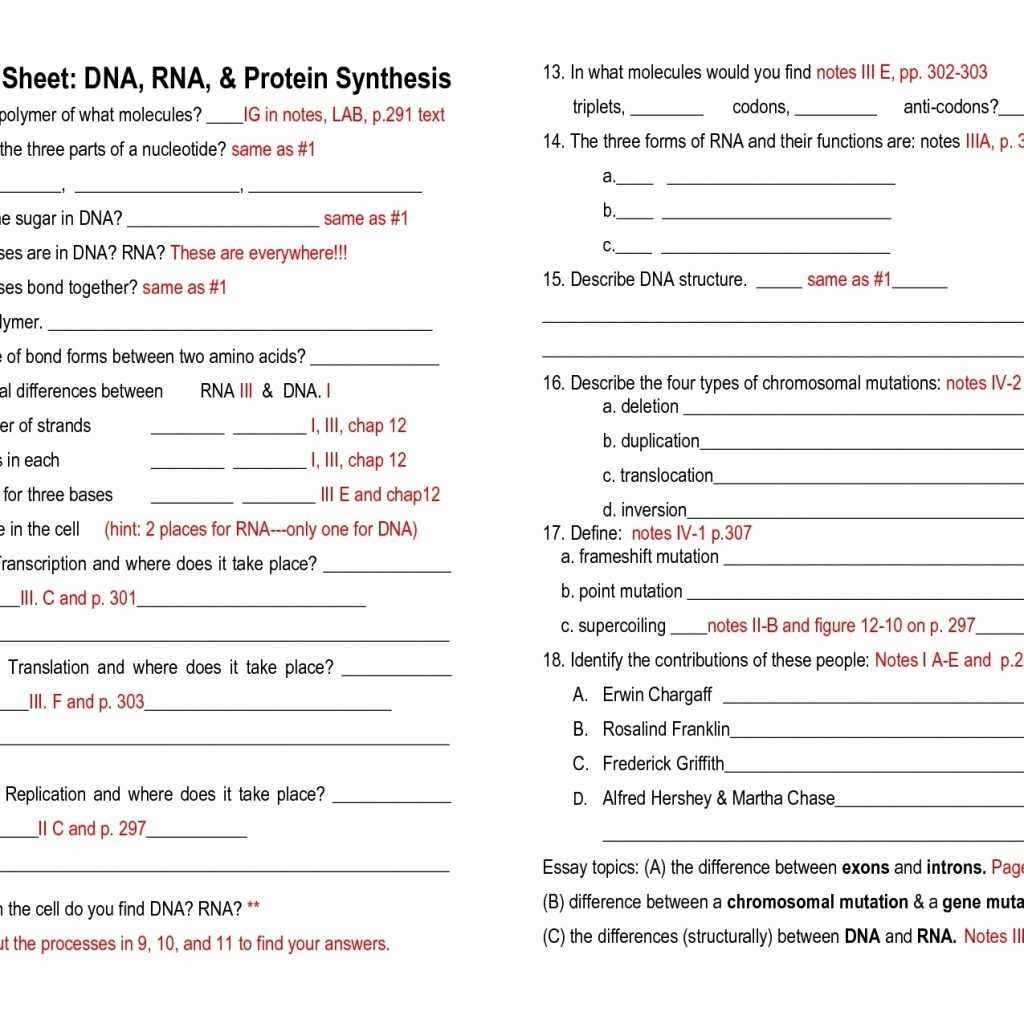 Dna Rna And Protein Synthesis Worksheets Answer Key With Protein Synthesis Worksheet Answers