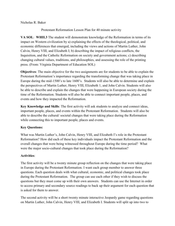 Examining the Protestant Reformation Through Worksheets: Unpacking the Answers