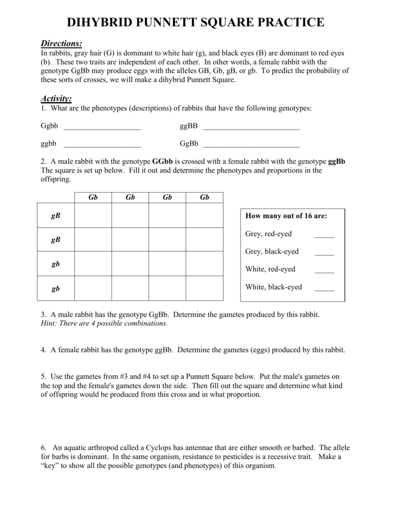 Dihybrid Punnett Squares For Punnett Square Practice Worksheet Answers