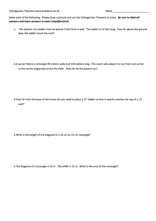 By providing students with a Pythagorean Theorem Word Problems Worksheet, instructors can ensure that their students have a strong foundation in geometry. This worksheet will also help to increase their confidence in the subject, making it easier for them to apply the theorem in the future.