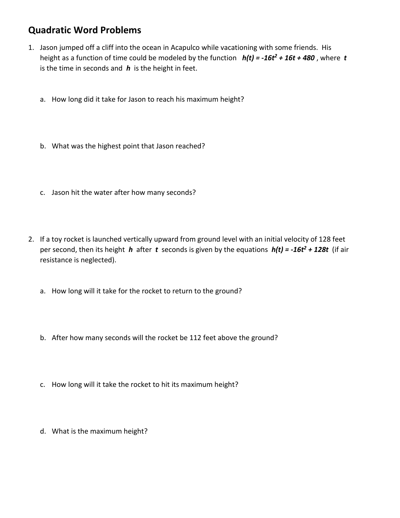 Quadratic Equations Word Problems Worksheet With Regard To Quadratic Equations Word Problems Worksheet