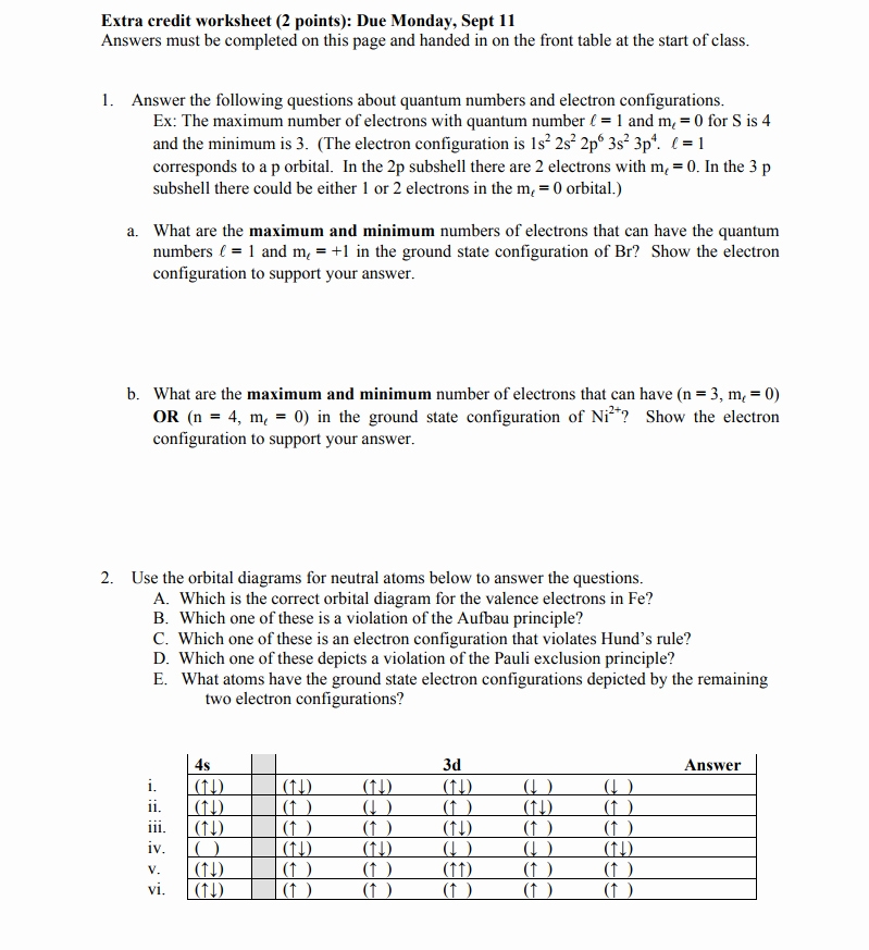 The worksheet should also include a number of exercises. These exercises should include questions designed to help students develop an understanding of the basic principles of quantum numbers. For example, the worksheet might include questions that ask students to identify the quantum numbers associated with a given electron configuration.