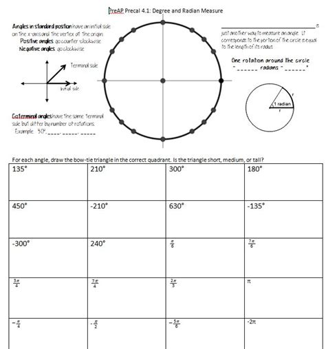 Secondly, a radians to degrees worksheet provides students with a convenient reference tool. By having the angles already written out, students can quickly and easily review and practice the conversions. As a result, they can save time and energy that would otherwise be spent on trying to remember the conversions from memory.