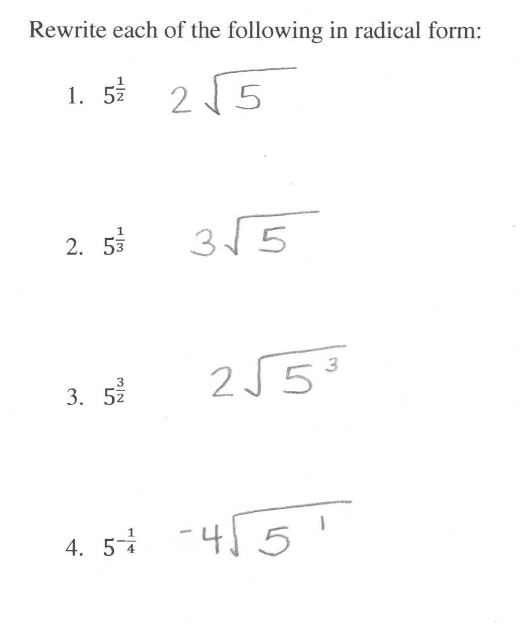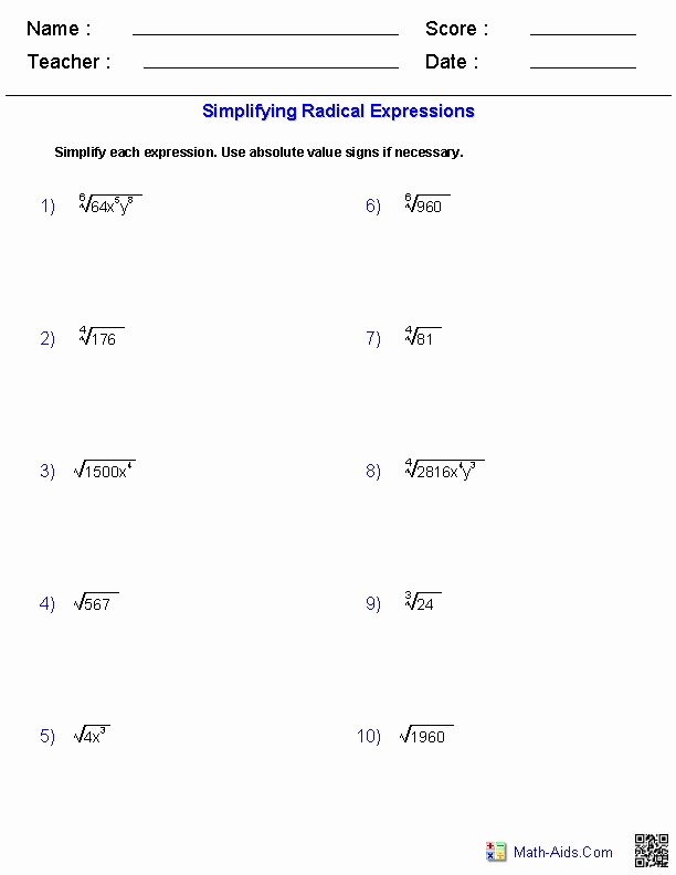 Radicals And Rational Exponents Worksheet