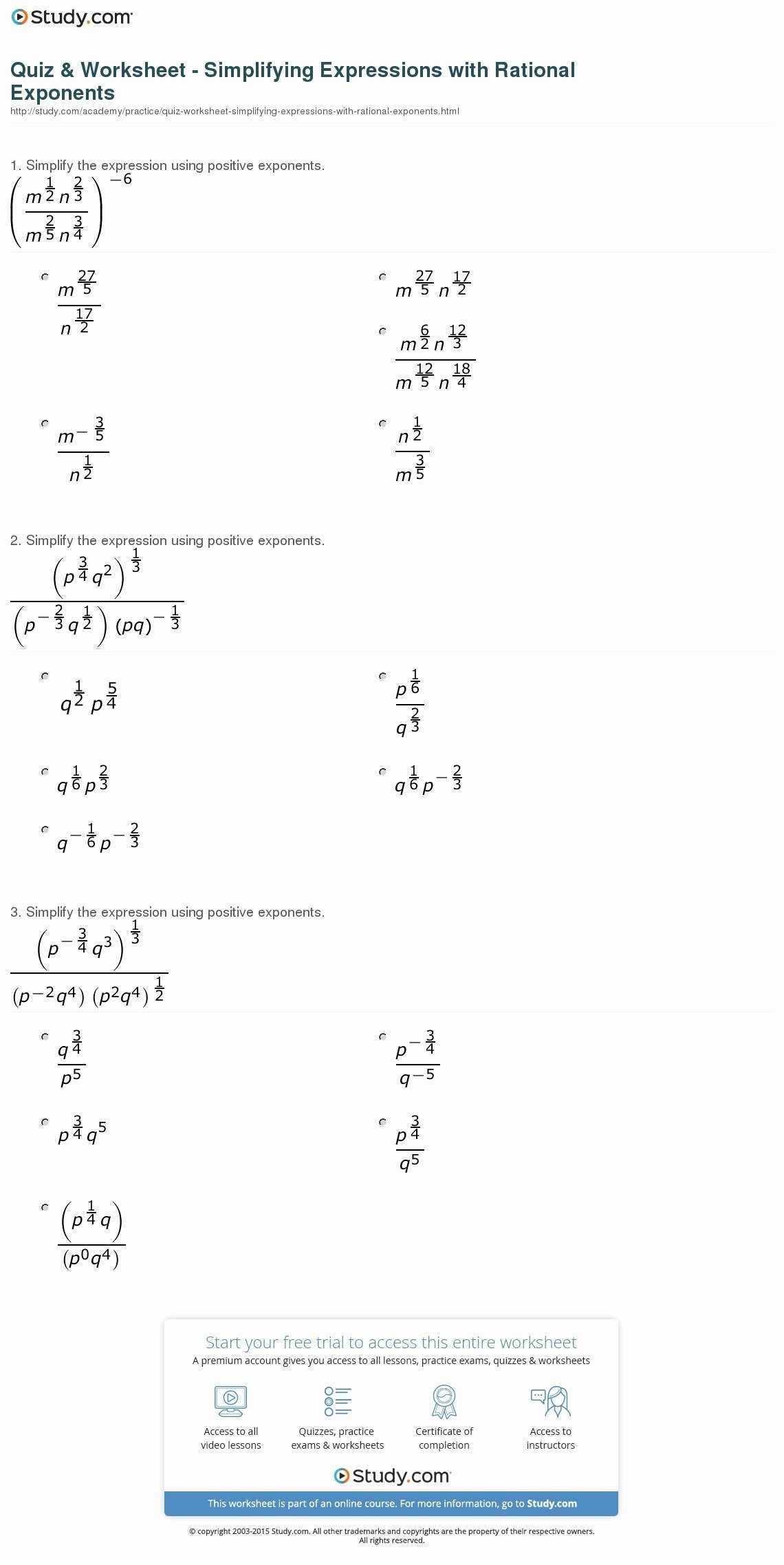 How to Use the Rules of Exponents to Solve Rational Expressions Worksheet Questions.