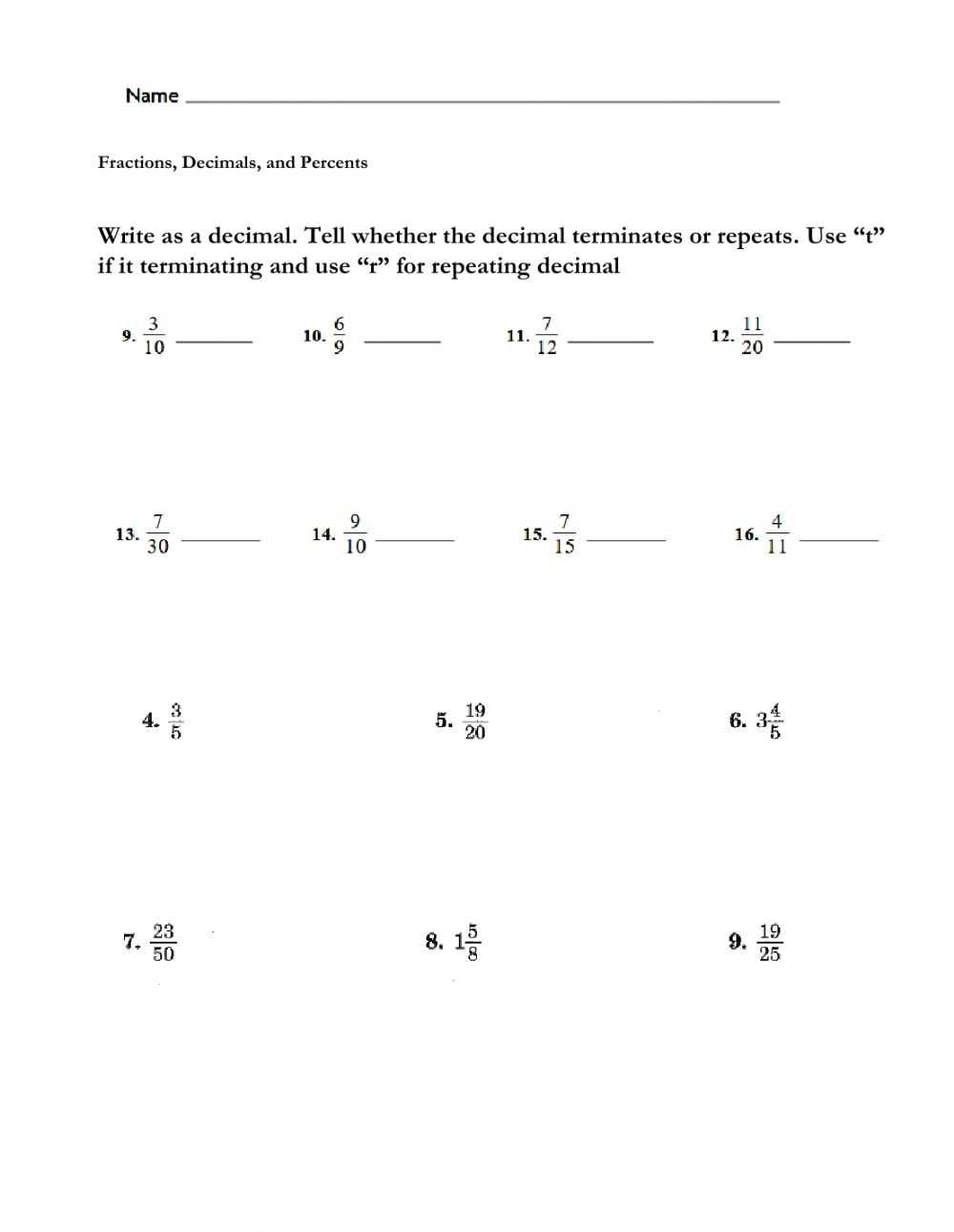5 Repeating Decimals To Fractions Worksheet / Worksheeto Pertaining To Repeating Decimals To Fractions Worksheet