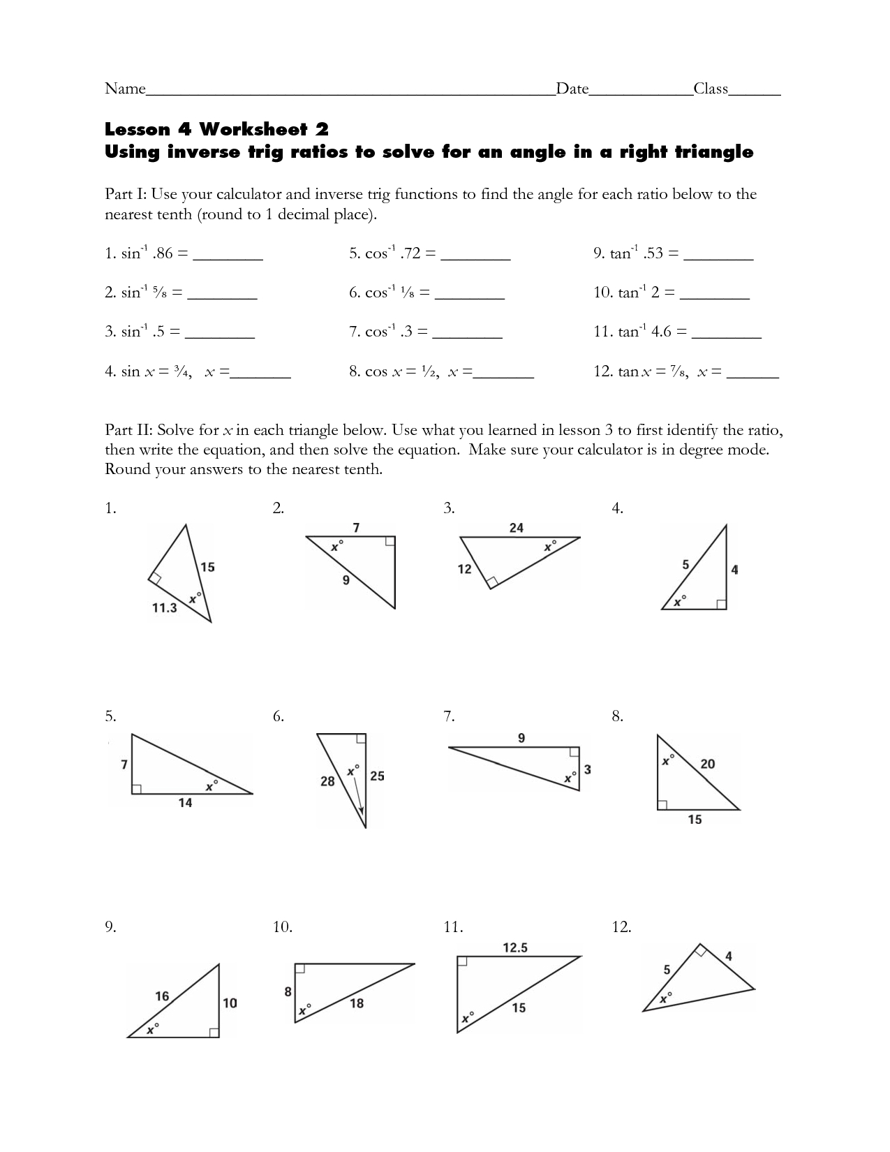 Inverse Ratios Right Triangle Trigonometry Worksheet Inside Right Triangle Trig Worksheet