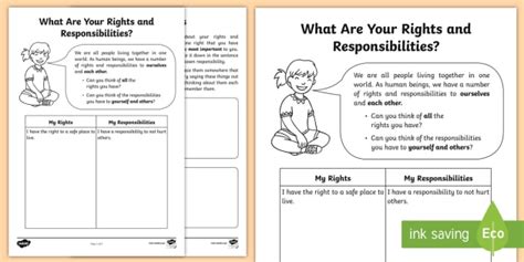 By using a rights and responsibilities worksheet, children can gain a better understanding of their rights and responsibilities. It will also help them to become more aware of how their actions affect others, and how they can protect and respect their rights.