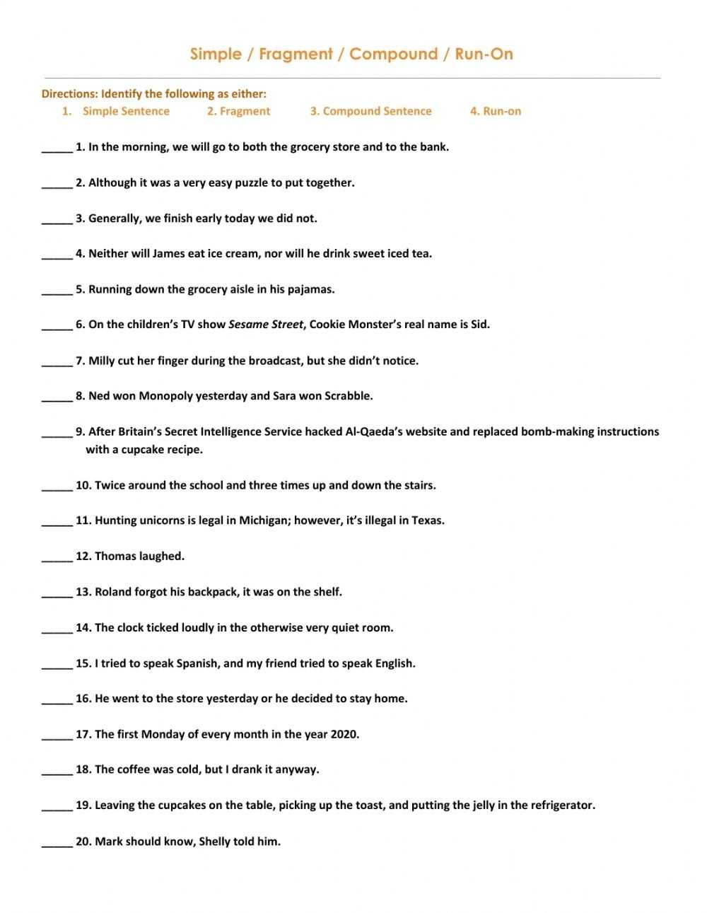 3. Once you’ve read through the worksheet, identify any run-on sentences that you may have used in your writing.