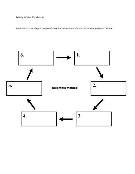 The scientific method steps worksheet typically consists of six steps. The first step is to ask a question. Students must identify and clearly state the specific question they are trying to answer or the problem they are trying to solve. This step is important as it sets the stage for the remainder of the experiment.