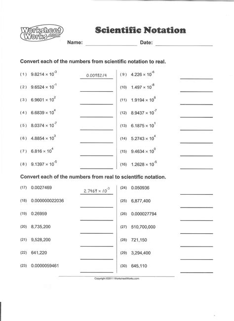 4. Incorporate games into the worksheet as well. For instance, create a game where students have to guess the correct number represented in scientific notation. This will not only help them gain a better understanding of scientific notation, but also help them practice their estimation and problem-solving skills.