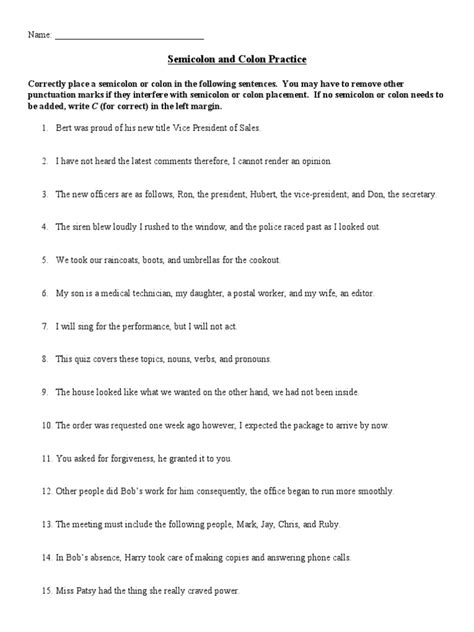 Worksheets are a fantastic way to teach students about semicolons and colon usage. It is important to provide students with clear and concise instructions on how to use these punctuation marks correctly.