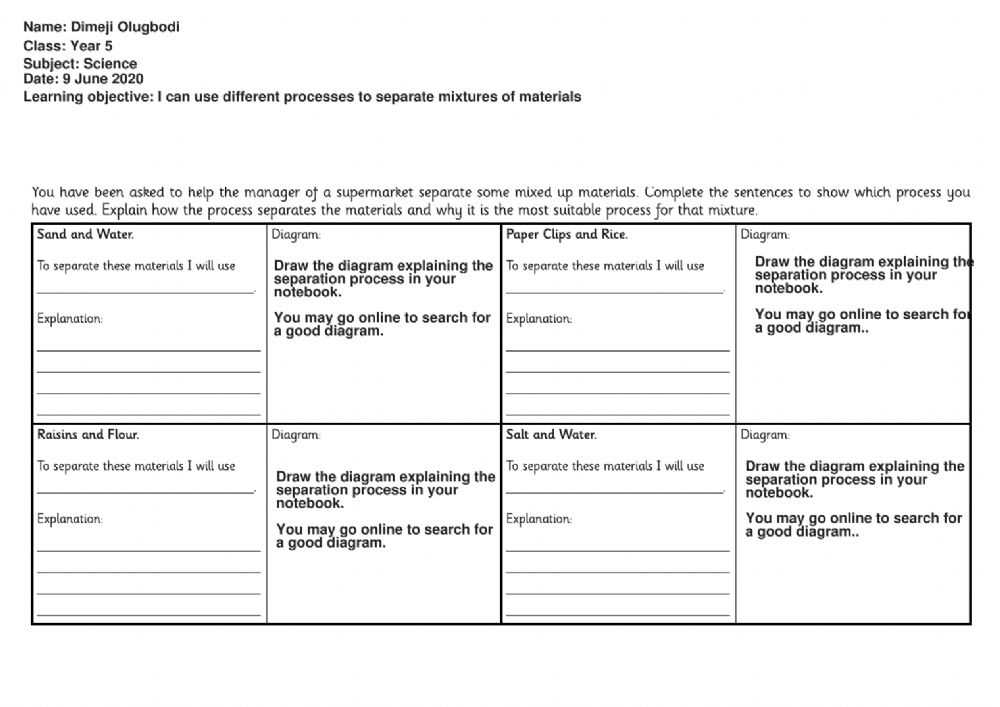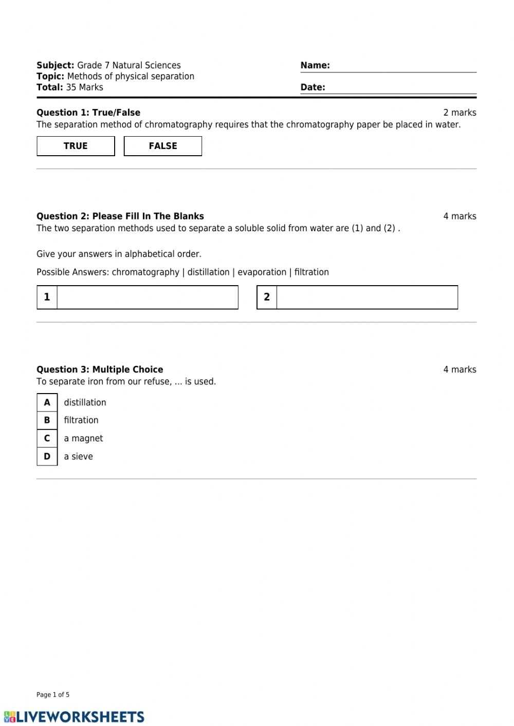 Grade 7 Separation Of Mixtures Worksheet Pertaining To Separation Of Mixtures Worksheet