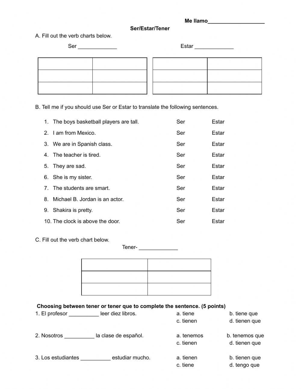 The Ser Estar worksheet helps to identify the differences between the two verbs and provides guidance on how to correctly use them in different contexts. It includes a variety of questions that help to distinguish between the two verbs and provides examples of sentences to illustrate when each verb should be used. Additionally, the worksheet includes practice exercises to help learners better understand how to apply the concepts they have learned.