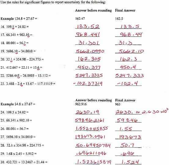 The use of a significant figures worksheet in chemistry class can be a beneficial tool for students to understand and practice the concept of significant figures. Significant figures are the digits in a measurement that are known with certainty, plus one estimated digit. A significant figures worksheet helps students to learn how to properly round a measurement to the correct number of significant figures.
