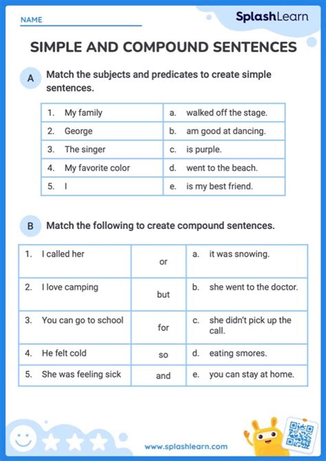 The worksheet also helps students to identify when to use a simple or a compound sentence. For example, if the student is writing about a specific topic, they may find it helpful to use a simple sentence to provide the basic information about the topic. On the other hand, a compound sentence may be more appropriate for discussing a more complex topic. By learning when to use each type of sentence, students can improve their writing skills and make their writing more effective.