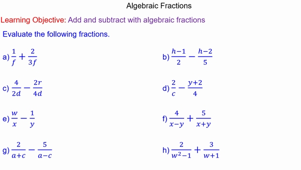 Algebraic fractions can be intimidating for students. However, with the right worksheets and a few simple steps, students can make these fractions easy to understand.
