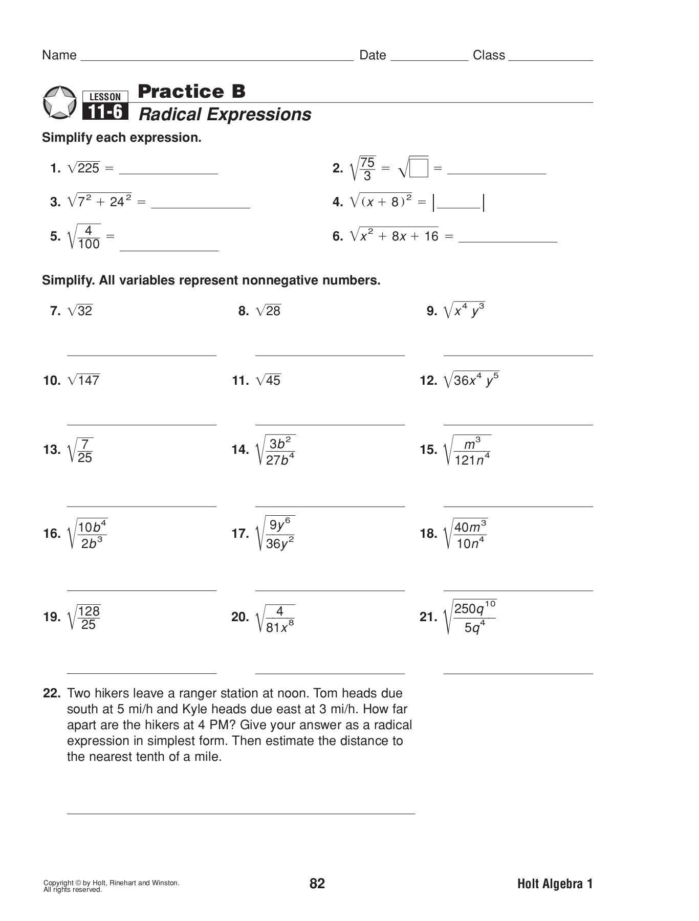 First, a simplifying radical expressions worksheet provides a way for students to practice and hone their skills. By working through the worksheet, students can develop a better understanding of how to simplify radical expressions, and gain confidence in their ability to solve problems involving these expressions. This can lead to improved performance in math classes and tests.