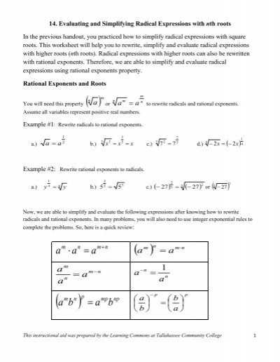 The Benefits of Understanding Simplifying Radicals With Variables Worksheets.