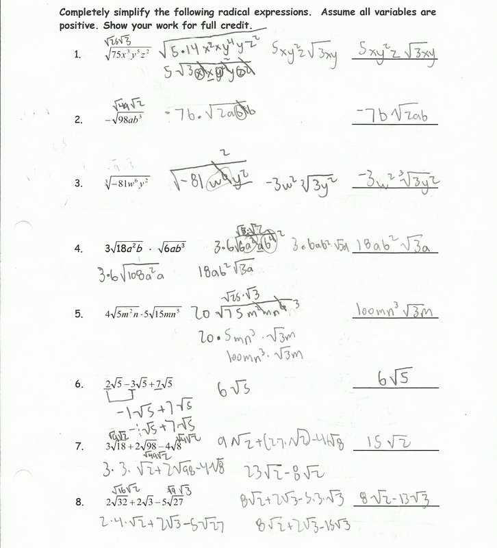 5 photos of the "Simplifying Radicals Worksheet Answer Key"