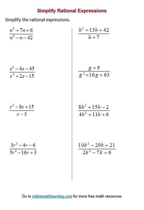 Mastering the process of simplifying rational expressions can be challenging, but with a little practice and some helpful tips, it is possible to become proficient. One way to make this process easier is to use a worksheet. A worksheet is a great way to make sure that you are working through each step of the process correctly and avoiding any common mistakes.