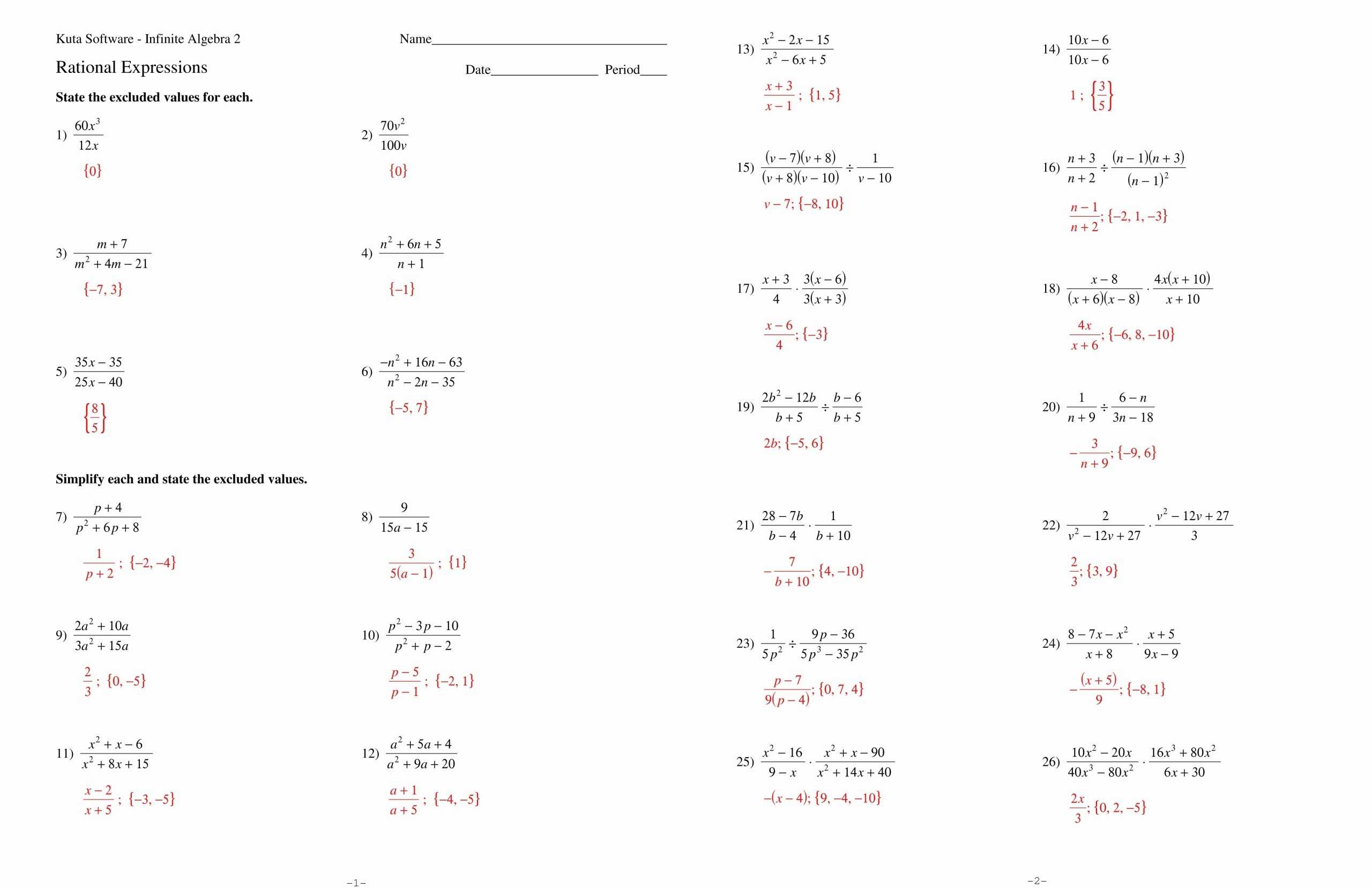 Simplifying Rational Expressions Worksheet