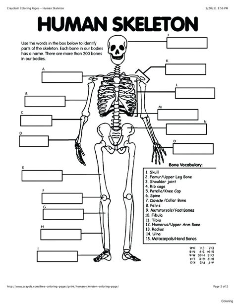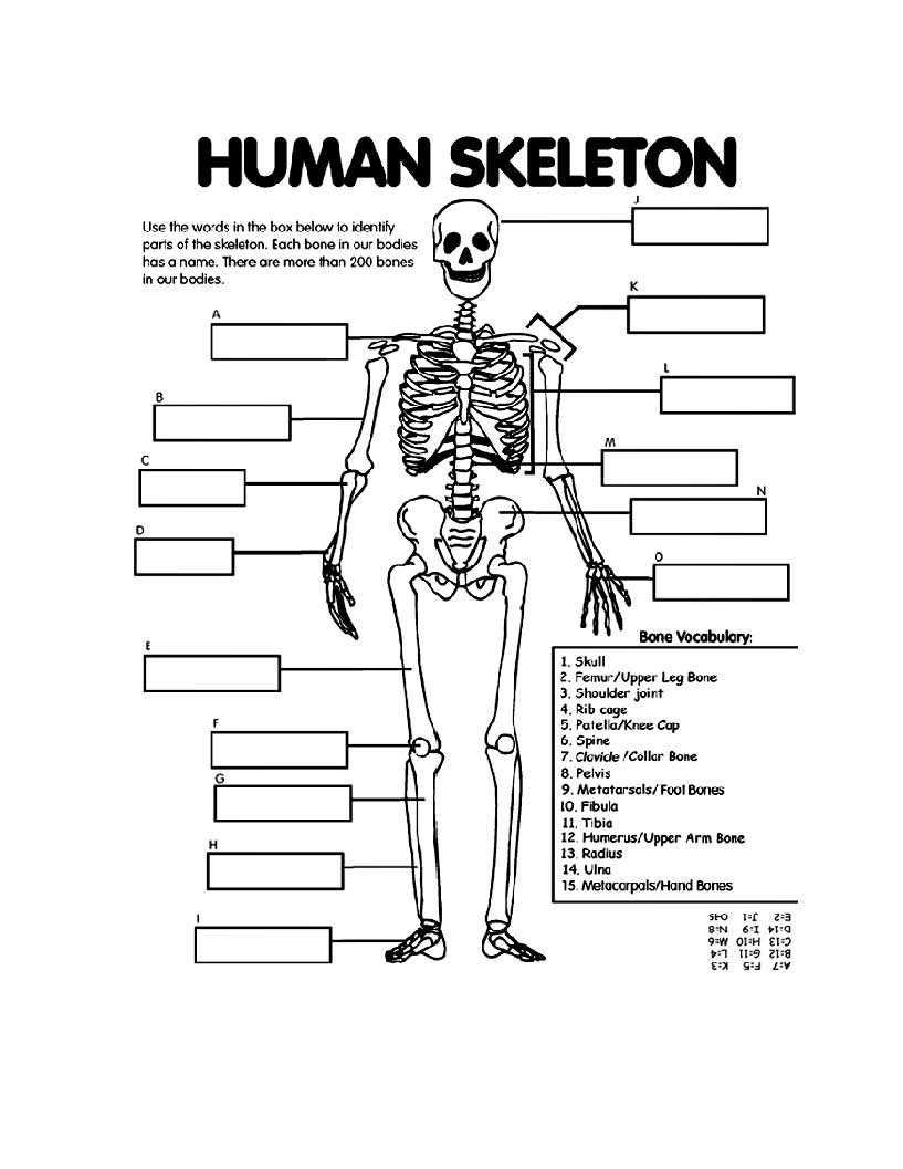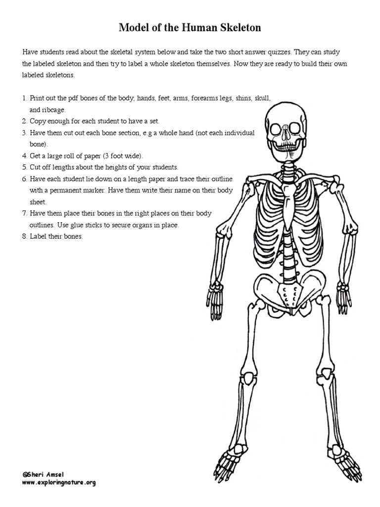 The worksheet should include a diagram of the skeletal system. Students should be encouraged to label the various bones, which can be done with colored pencils, markers, or crayons. The instructor can then discuss the purpose of the various bones, such as the skull and ribs, and their locations in the body.