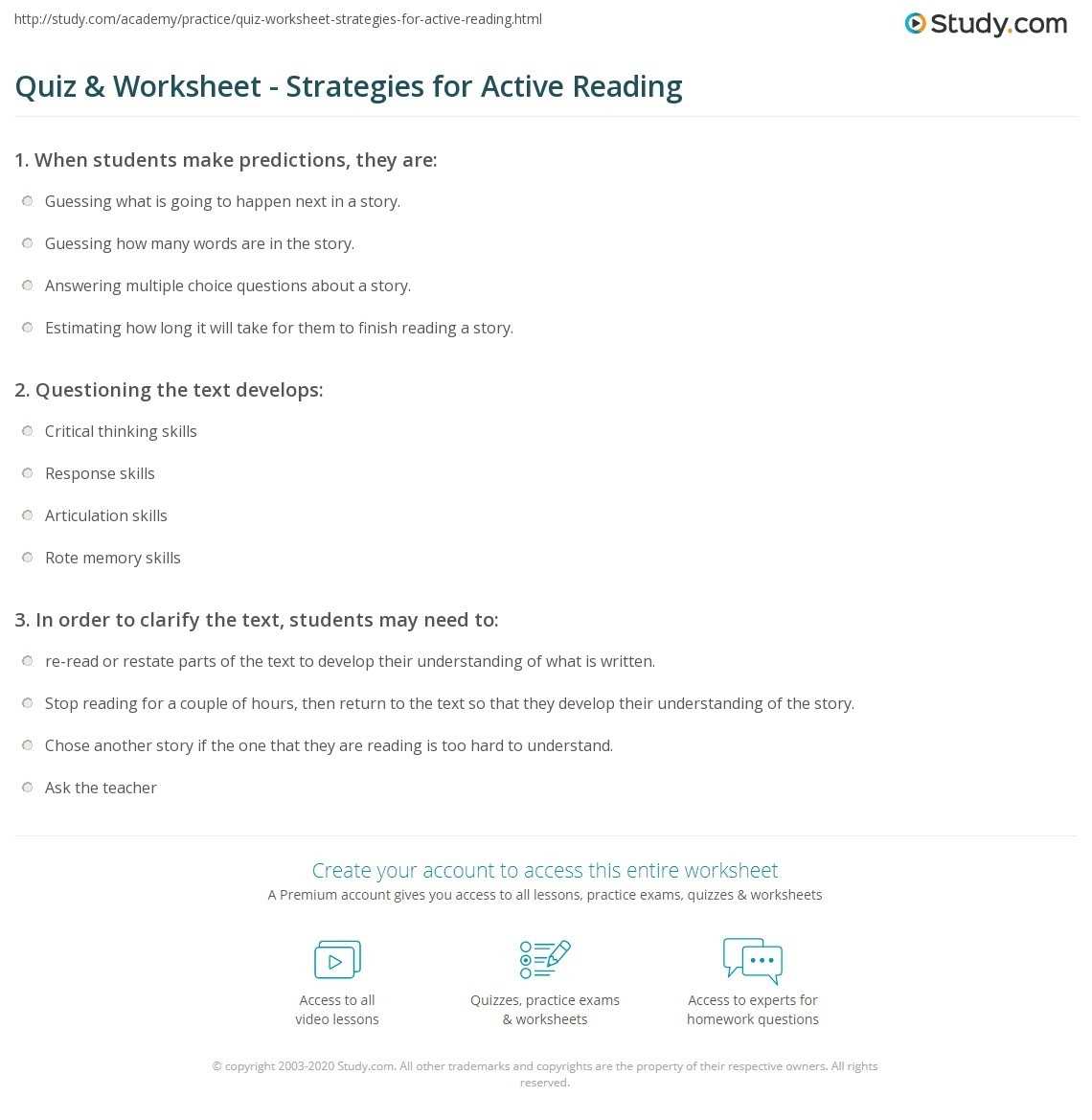 Developing Critical Thinking Skills Through Skills Worksheet Active Reading