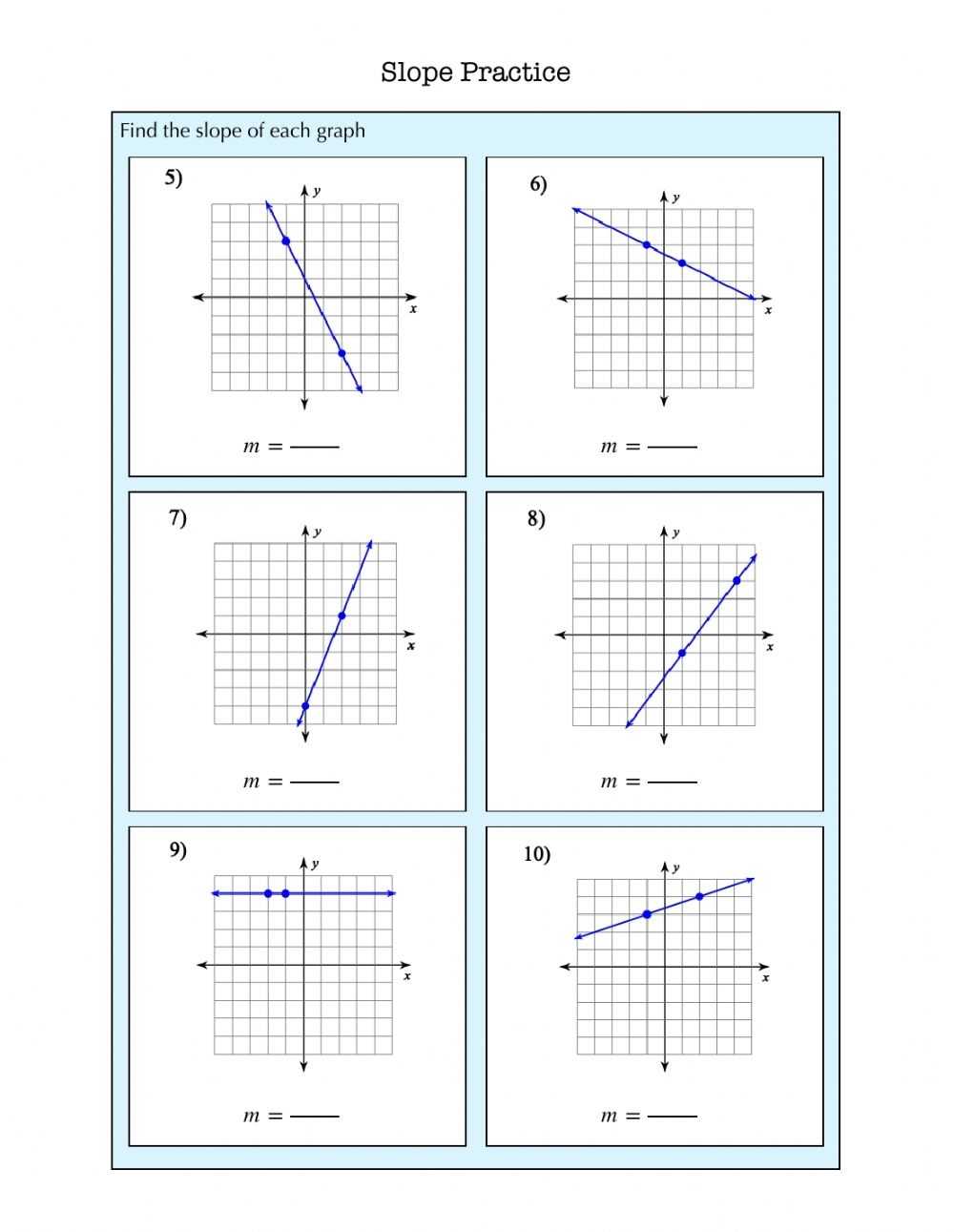 By providing students with a Slope of a Line Worksheet, teachers can help to ensure that their students understand the linear relationship between two points on the same line. By allowing students to visualize the linear relationship, they can gain a better understanding of the concept of slope and the linear equation that describes it.