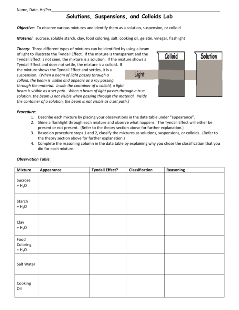 Exploring Solutions Colloids and Suspensions worksheets are an effective way to teach chemistry. They provide a structured way for students to learn the material and apply it to their own lives. The worksheets also provide activities that help to reinforce the concepts and help the students to develop a deeper understanding of the material.