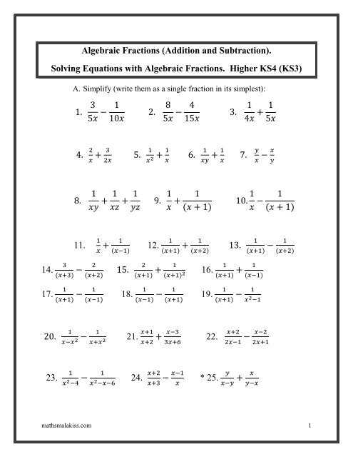 Student In 2.0: Algebraic Fractions Worksheet Throughout Solve Equations With Fractions Worksheet