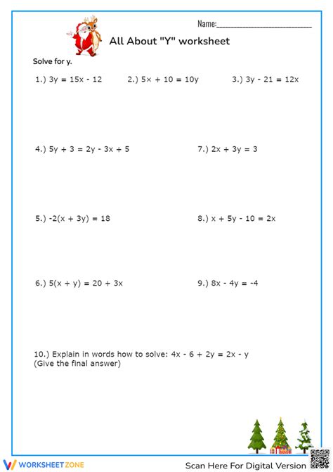 Solving for Y worksheets can also be used to help people make decisions about their finances. For example, they can be used to determine how much money someone needs to save for retirement in order to reach their financial goals. They can also be used to help figure out how to pay for college tuition and decide how much money to invest in a business.