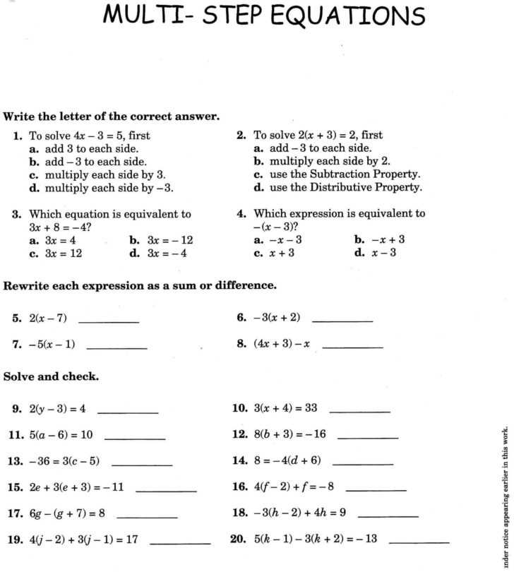 Multi Step Inequalities Worksheets With Answer Key Throughout Solving Multi Step Inequalities Worksheet