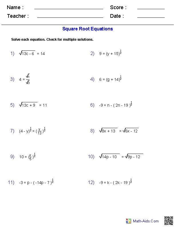 Solving square root equations can be a tricky task for many students. However, with the help of a solving square root equations worksheet, it can be made much easier. A solving square root equations worksheet is a useful tool for teaching students the fundamentals of solving square root equations. By using this worksheet, students can become proficient in solving these equations, thereby gaining a better understanding of the underlying mathematical principles.