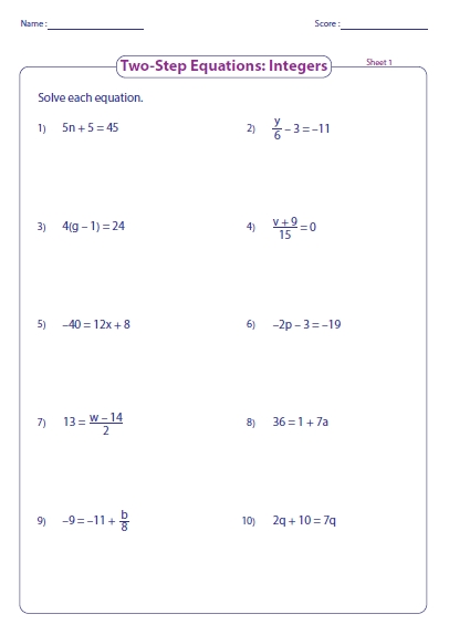 Different Ways to Use Two Step Equations Worksheets in Math Class