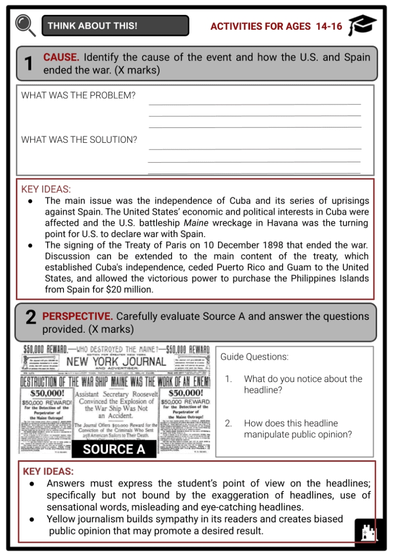 By engaging in these worksheet activities, students can gain a better understanding of the causes of the Spanish-American War and the role of various actors in the conflict. This can help them better understand both the history of the war and the current implications of international conflicts.