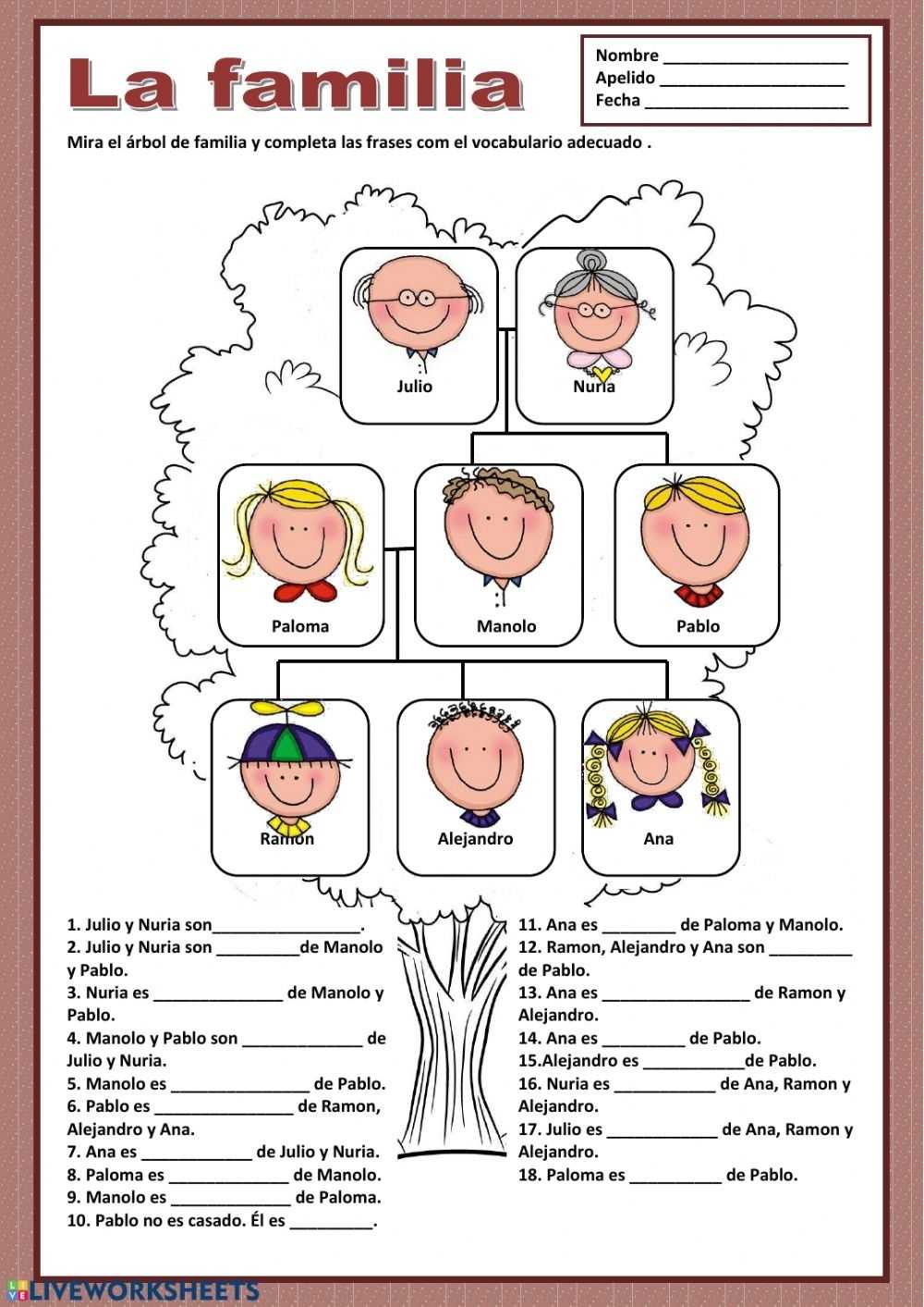 Spanish Family Tree Worksheet
