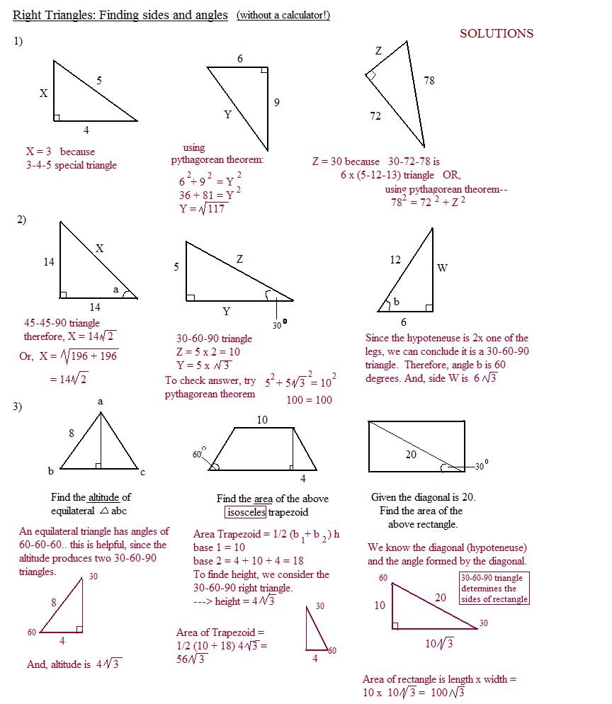 Trigonometry is a branch of mathematics that studies the relationships between angles and sides of triangles. Knowing the trigonometric ratios of special right triangles can be very helpful in solving problems in a variety of fields. This practice worksheet is designed to help you learn the trigonometric ratios of special right triangles.
