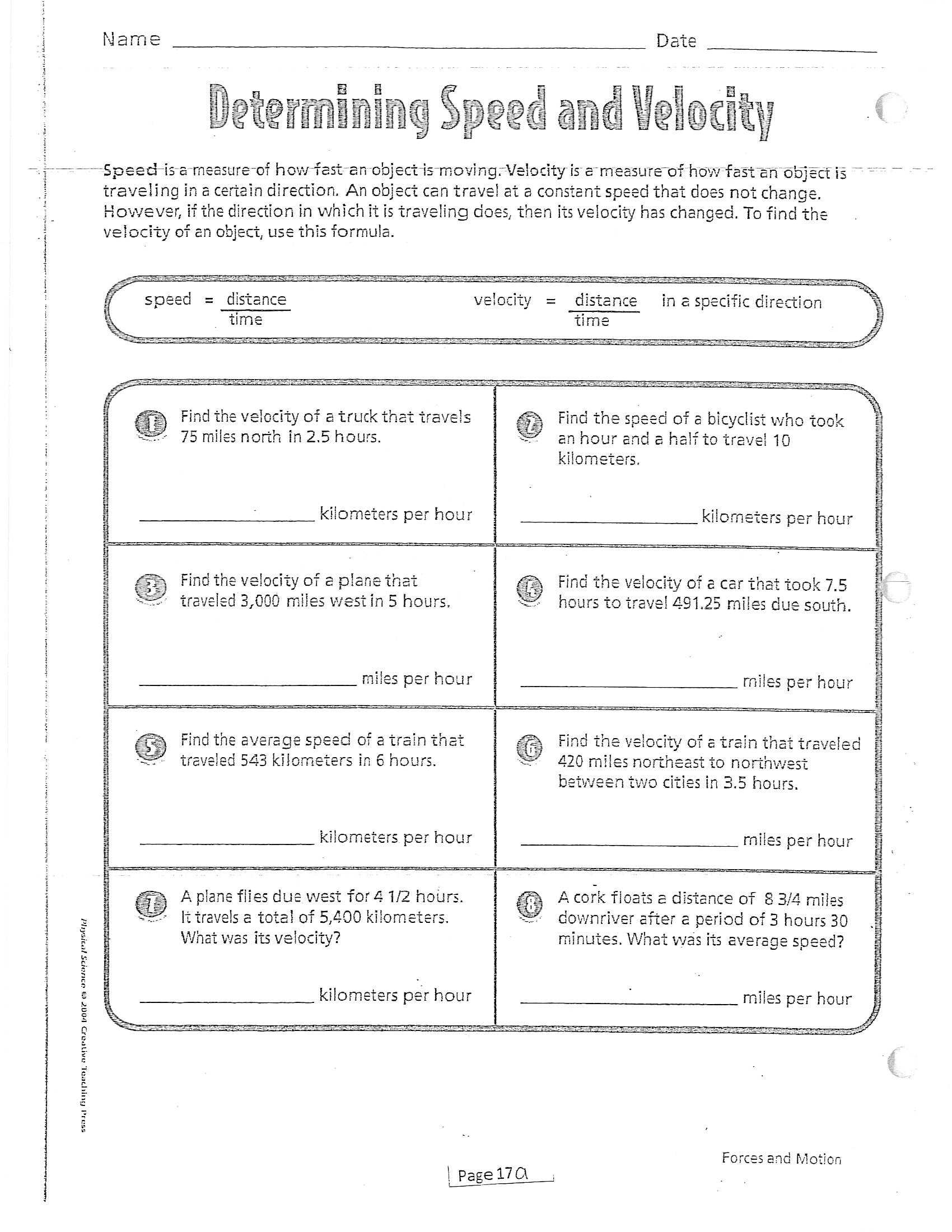 Speed and velocity worksheet answers provide a great way to learn about the differences between speed and velocity, and to help students understand how to calculate each. Through working through each problem, students can gain a better understanding of this important concept. This worksheet is a great way to teach students the basics of speed and velocity, and to demonstrate their ability to apply that knowledge in real-world scenarios.