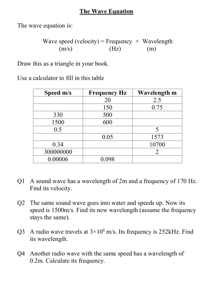 Wave Speed Equation Practice Problems Worksheet Answers — Villardigital For Speed Practice Problems Worksheet