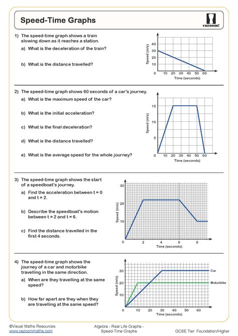 Speed vs Time graph worksheets are an invaluable tool for science education. They allow students to gain a visual understanding of the relationship between speed, time, and distance. By engaging with these worksheets, students can explore the concept of velocity, acceleration, and the physics of motion.