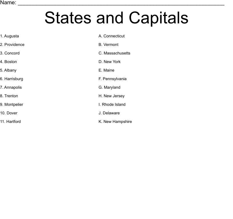 Northeast States And Capitals - Matching Worksheet - Wordmint With Regard To States And Capitals Matching Worksheet