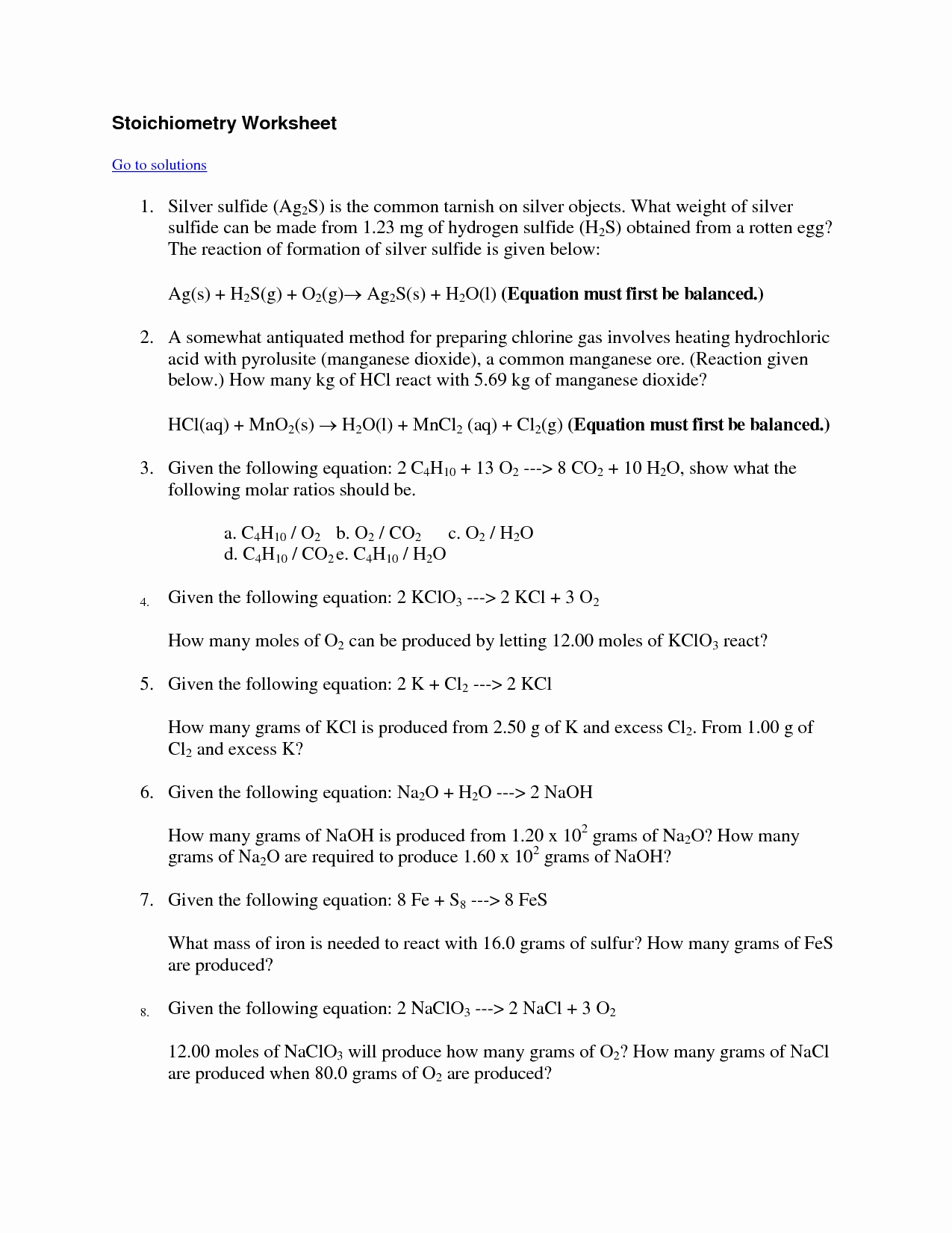 The purpose of this study was to explore the impact of a stoichiometry worksheet answer key on student performance. A stoichiometry worksheet was designed and administered to a sample of students in a high school chemistry class. The worksheet was then scored according to the provided answer key.