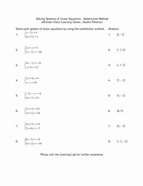 1. The substitution method worksheet requires that students have a strong grasp of algebraic concepts. This can be difficult for students who are new to algebra or who have not had sufficient practice.