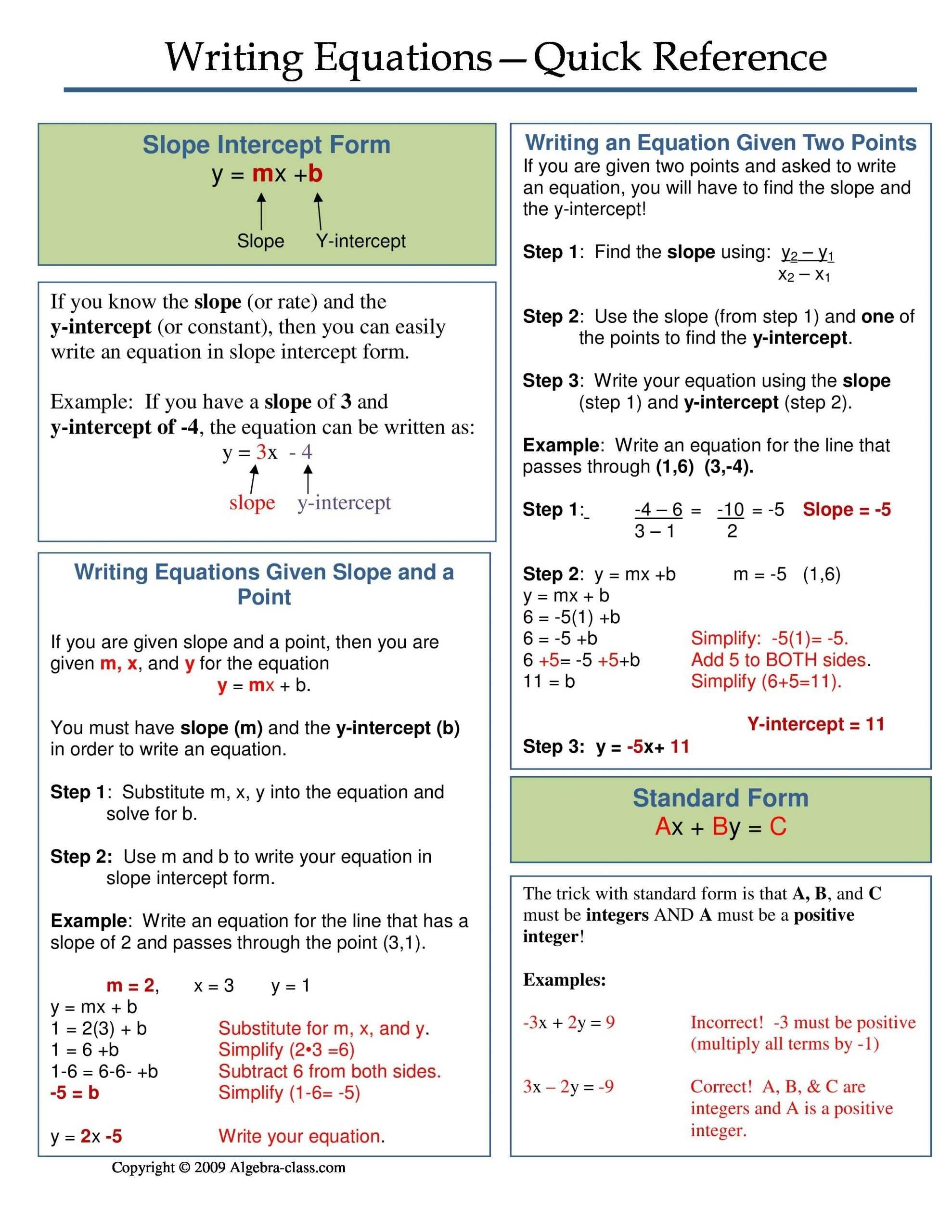 The worksheet consists of two sections: one for each equation. In each section, the equation is written in the standard form with all terms on one side of the equation equal to zero. Next to the equation, a box is provided to record the value of the chosen variable after it has been solved for. This box will be referred to as the “Substitution Box”.