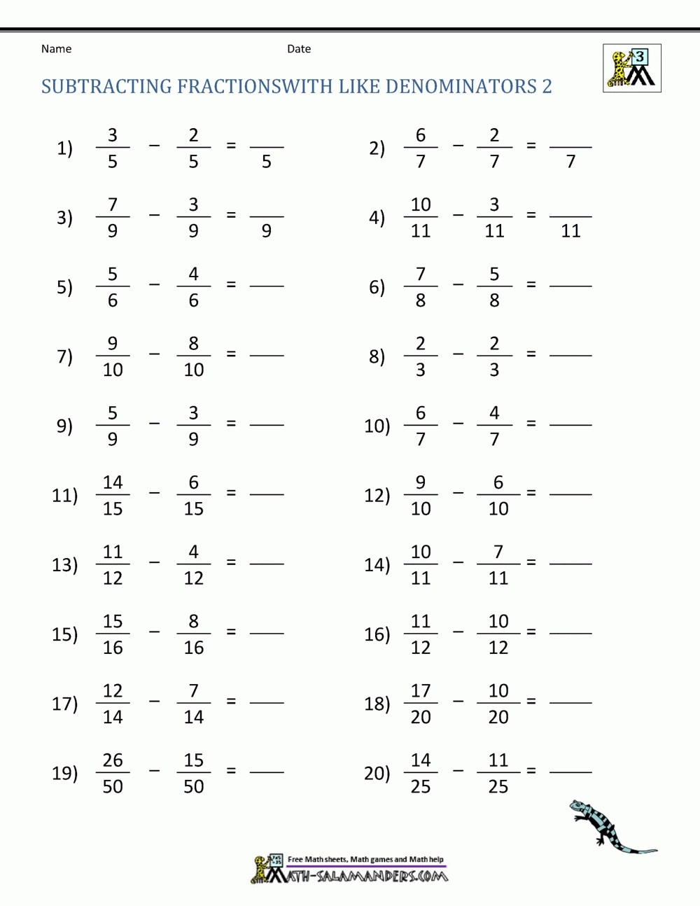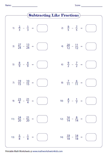The first type of worksheet is a basic subtraction worksheet. This type of worksheet uses simple equations to help students understand how to subtract two fractions with different denominators. The equations are written in a step-by-step format, which allows students to follow along easily. This type of worksheet is great for introducing the concept and giving students a better understanding of the process.