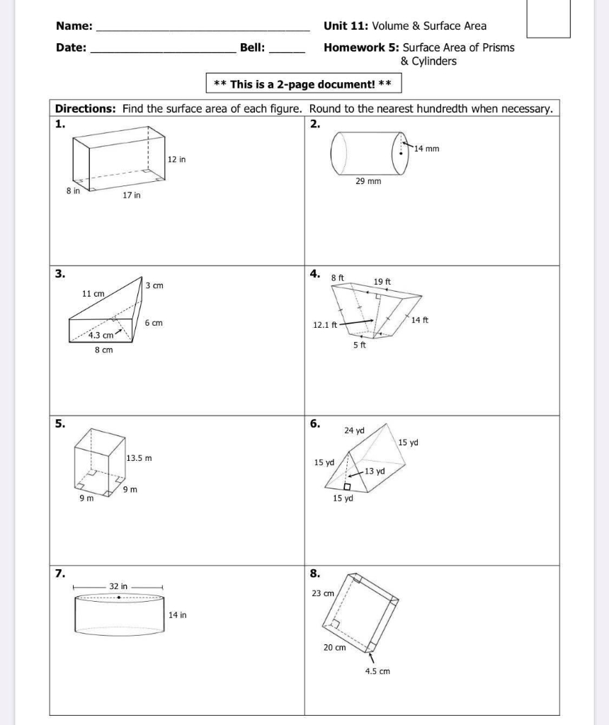 The Surface Area and Volume Worksheet is an invaluable resource for students who are looking to gain a better understanding of the concepts related to surface area and volume. This worksheet provides a comprehensive overview of the different formulas, as well as examples of how to calculate the different measurements. With this worksheet, students can gain a thorough understanding of the surface area and volume of various objects and use that knowledge to solve real-world problems.